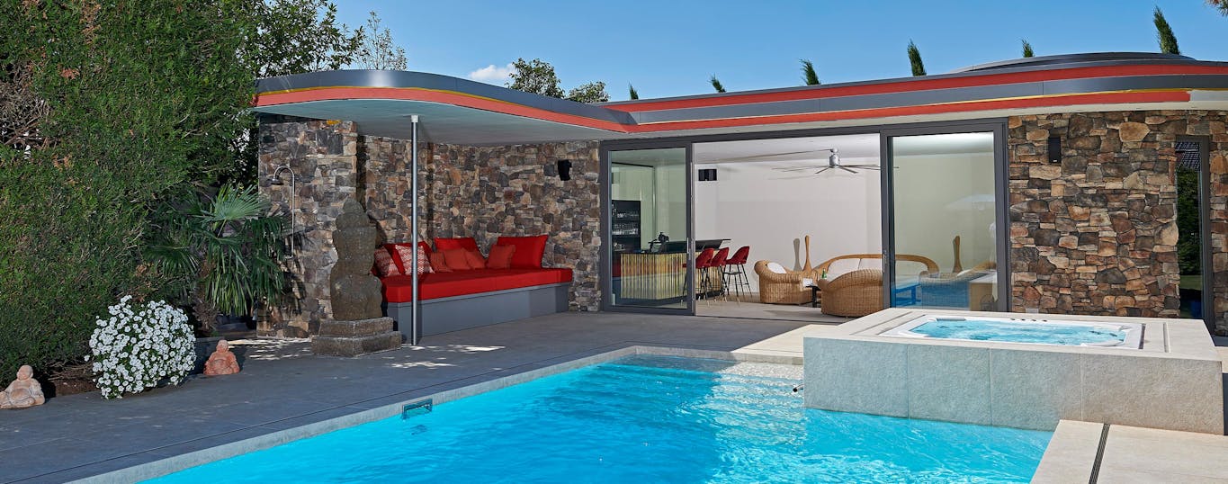 Poollandschaft in mediterranem Stil